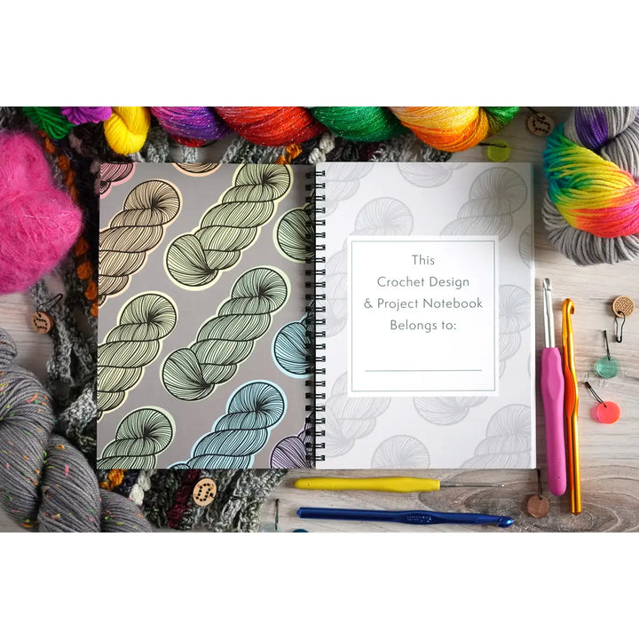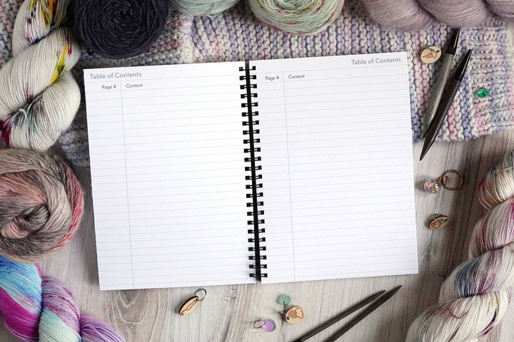 This is the perfect notebook for all knitters, crocheters, and designers! Designed to keep your projects and yarn swatches organized, keep track of projects, as well as offer a space for designs to be created, adjusted and duplicated. This A5 wire-o bound notebook has 120 pages that includes: - Name Plate - Index - 30 Projects with Design Pages - 28 Individual Design Pages - Numbered Pages - Yarn Swatch Notes - References and Ruler - Blank Section for Additional Notes - Inner Cover Design - 80 lb paper.